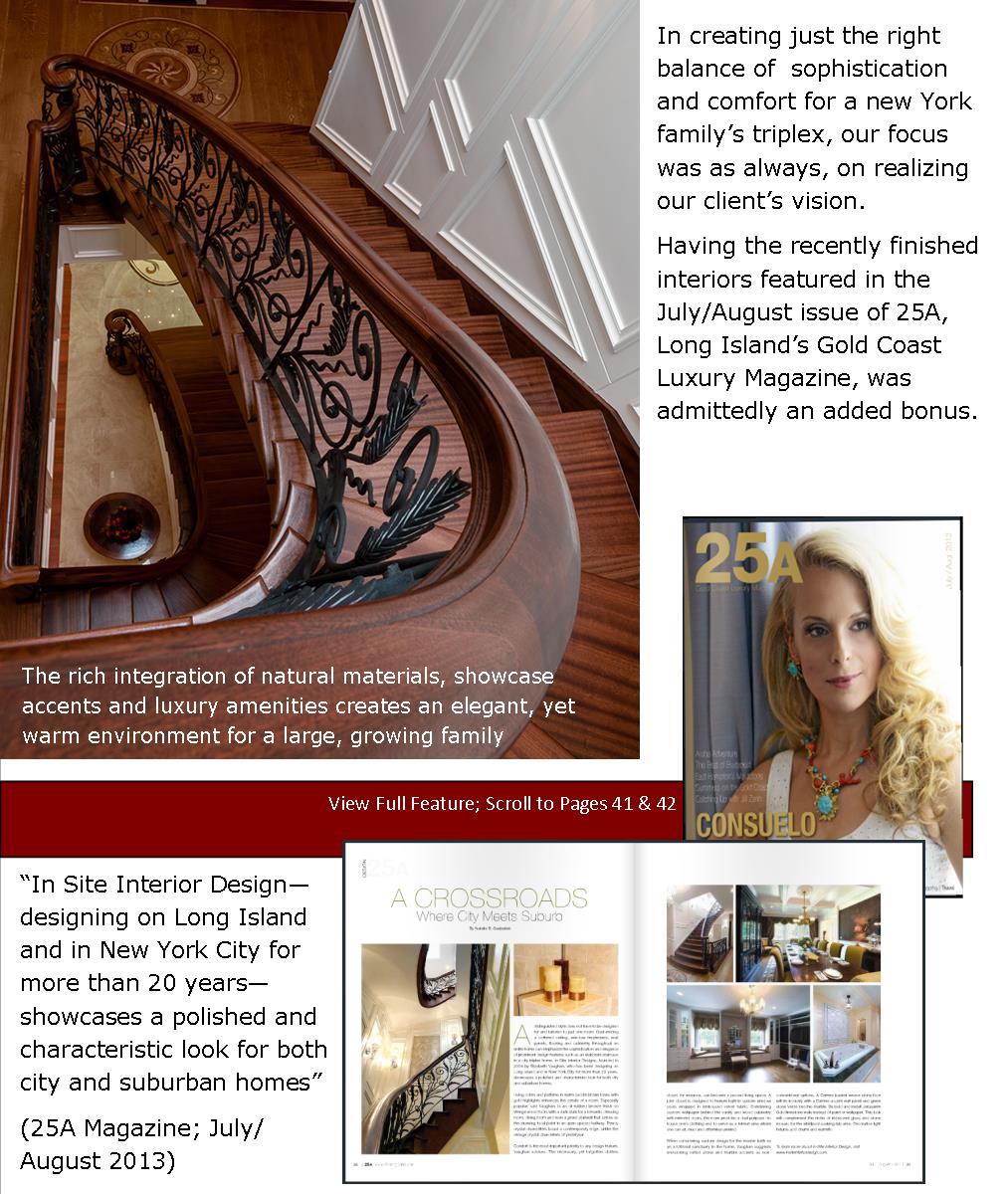 All of us at Insite Interior Design are so excited and honored to be mentioned in 25A Magazine, geared toward Long Island residents who have a fine-tuned taste for luxurious treasures!